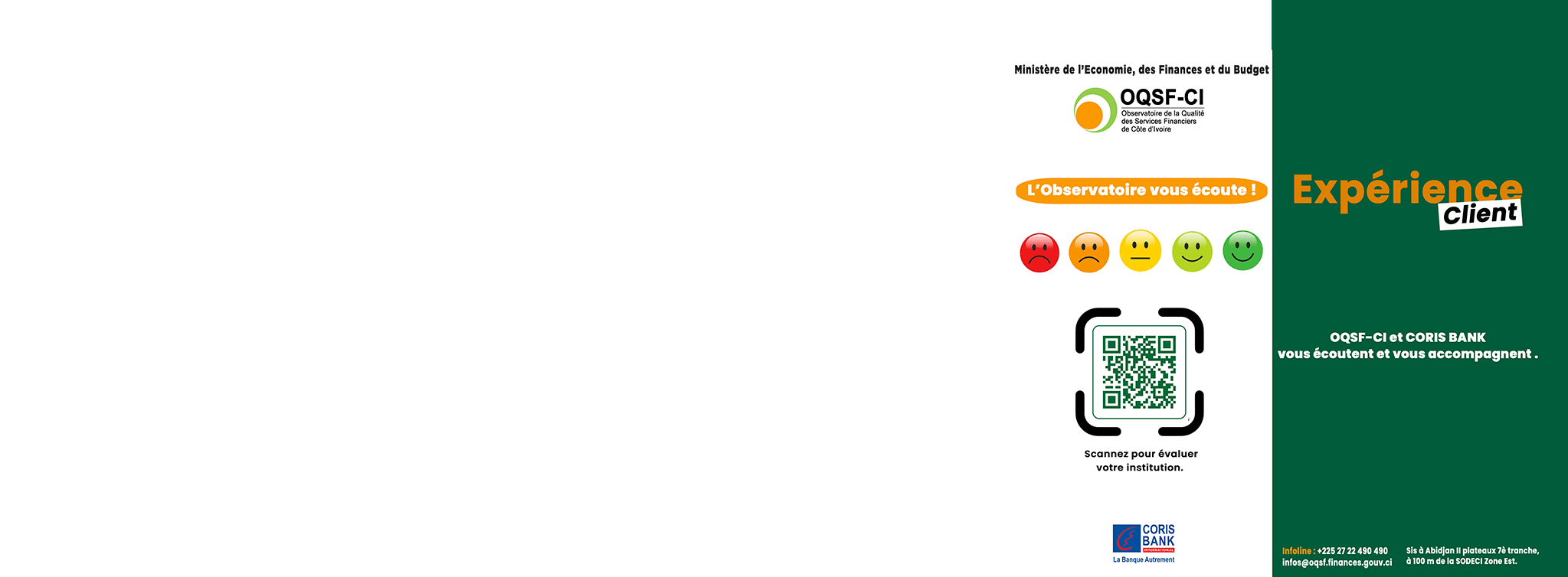 Observatoire de la Qualité des Services Financiers de Côte d’Ivoire (OQSFCI) & CBI CI vous écoutent et vous accompagnent.